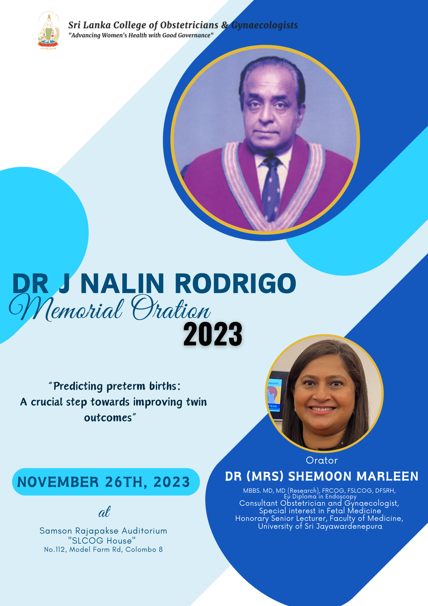 Dr J Nalin Rodrigo Oration 2023 Flyer | SLCOG.LK