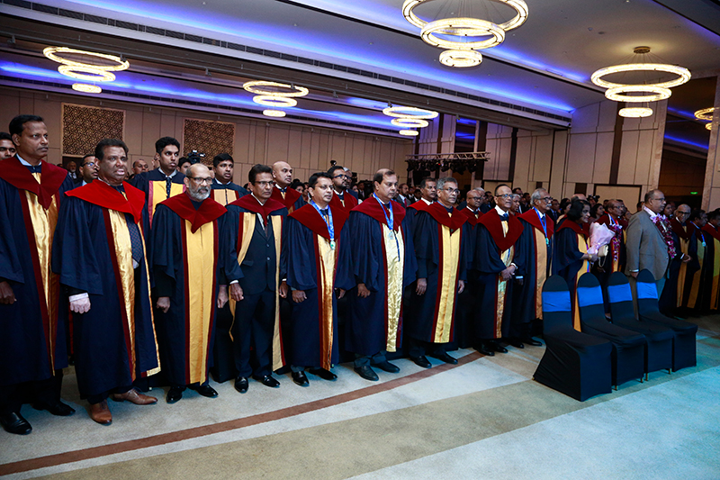 Traditionally, the outgoing president, Dr Sanath Akmeemana presented Prof Rukshan Fernandopulle with the president’s medal and handed over the new presidency.
