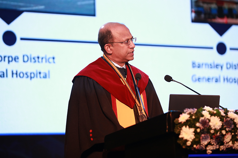 The ceremony was presided over by the Chief Guest, Prof Chrishantha Abeysena, Hon. Minister of Science & Technology, Guest of Honour Dr. Anil Jasinghe, Secretary, Ministry of Health & Mass Media and Special Guests Emeritus Professor Sir Sabaratnam Arulkumaran and Hon. Yasantha Kodagoda.